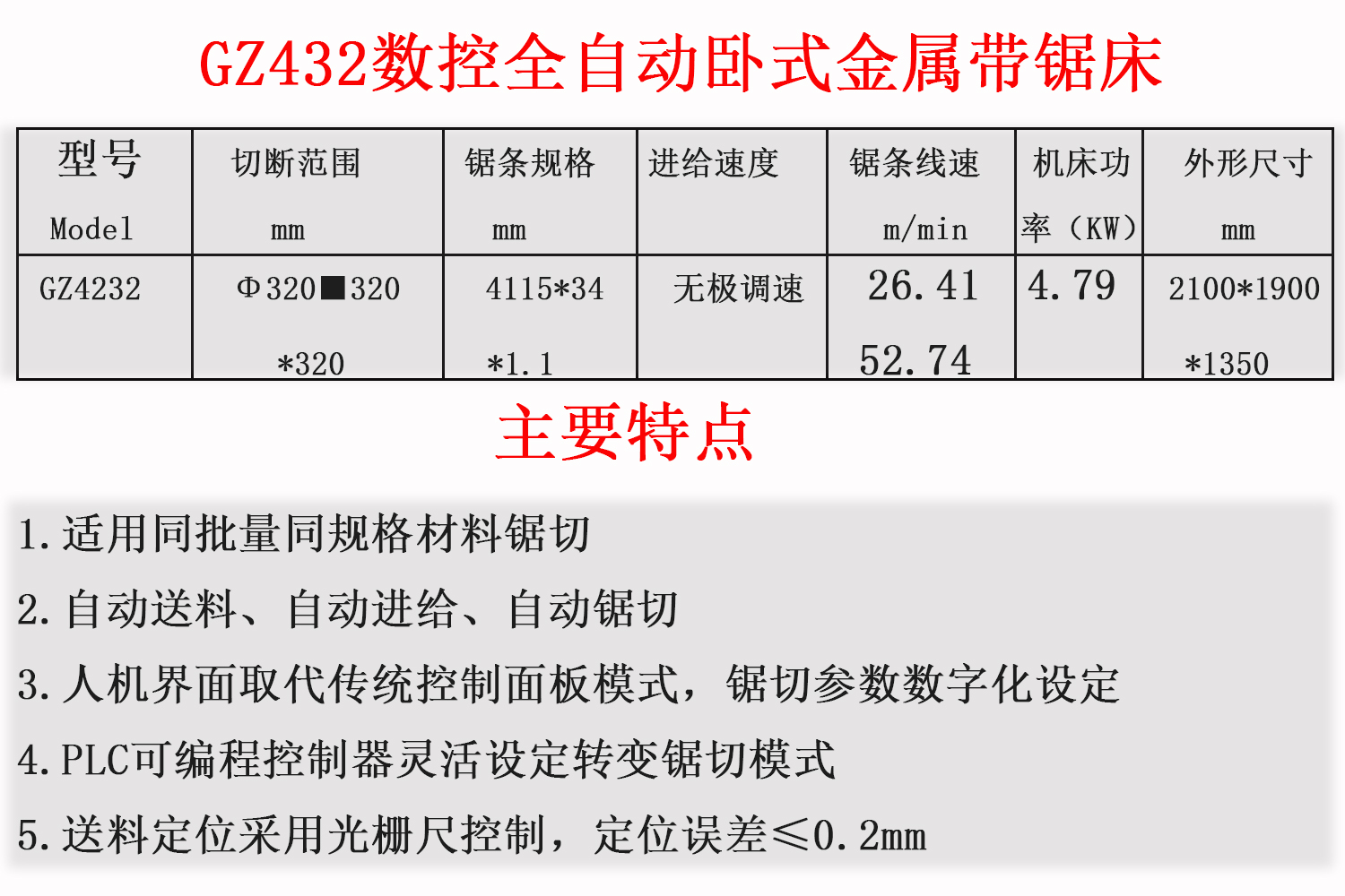 數(shù)控臥式帶鋸床GZ4233C