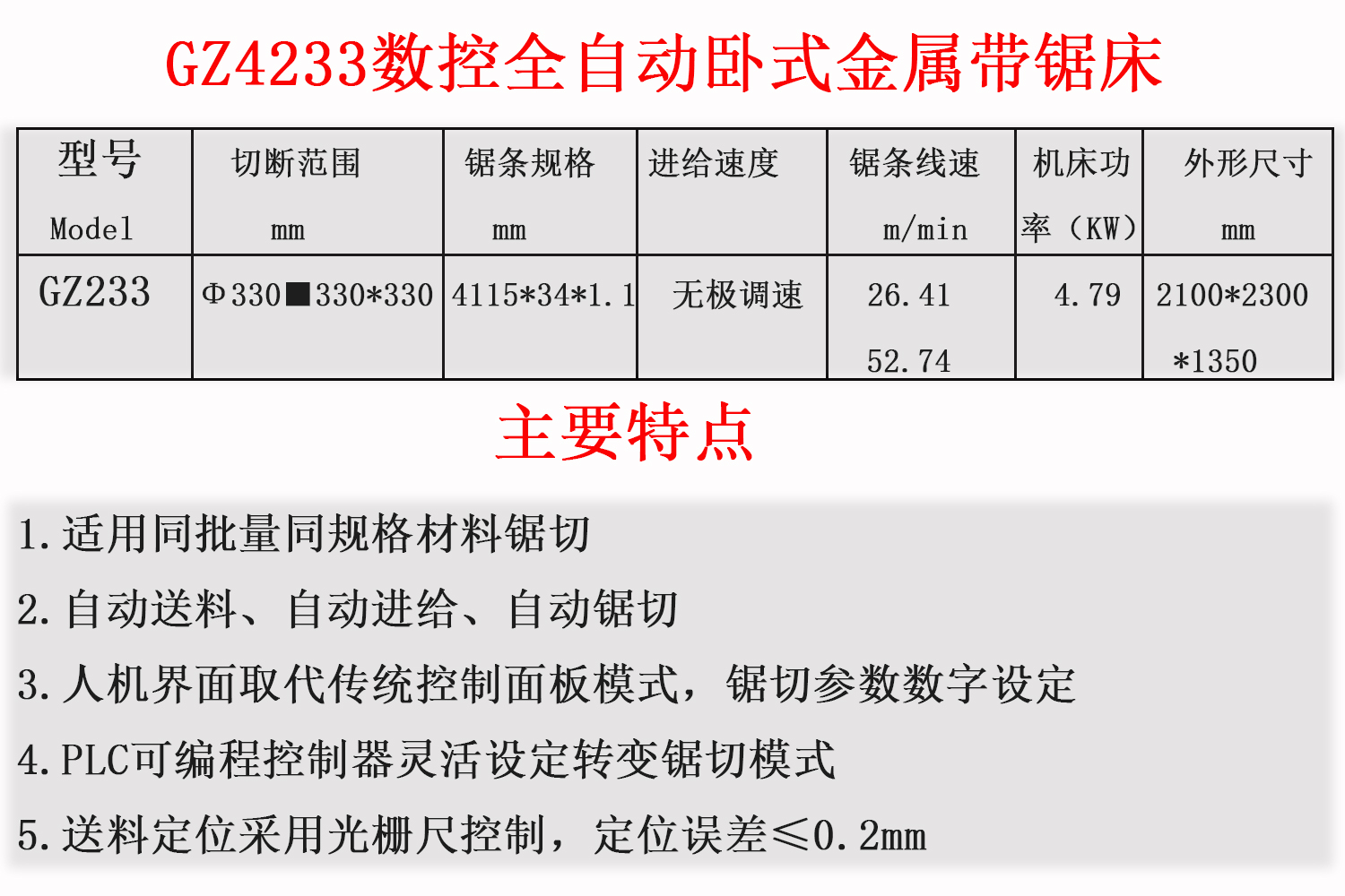 數(shù)控臥式帶鋸床GZ4233C